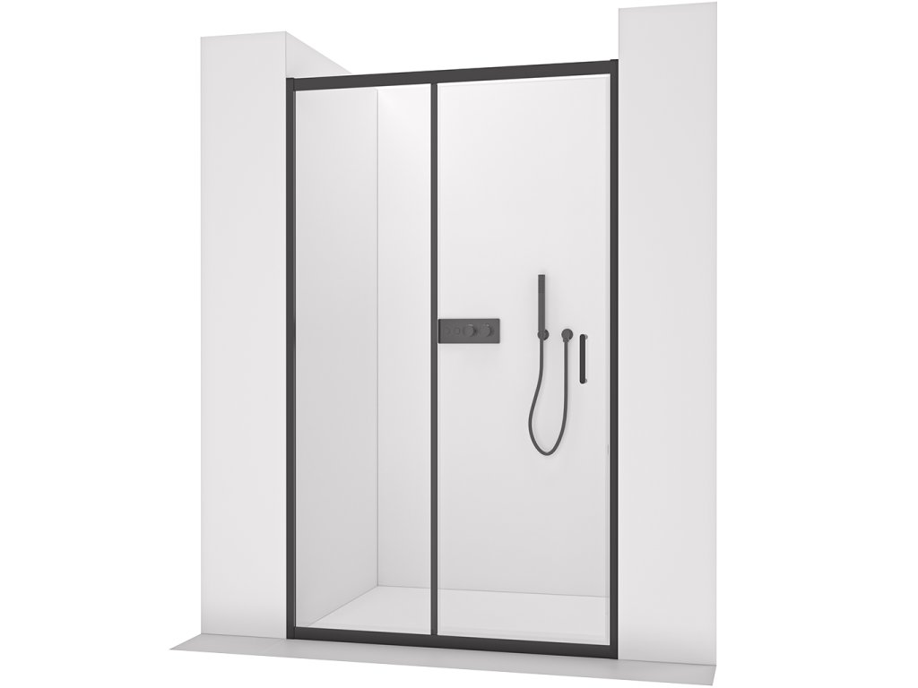 CERANO - Orlano tolóajtó zuhanykabinhoz B/J - 5 mm - matt fekete, átlátszó üveg - 100x195 cm