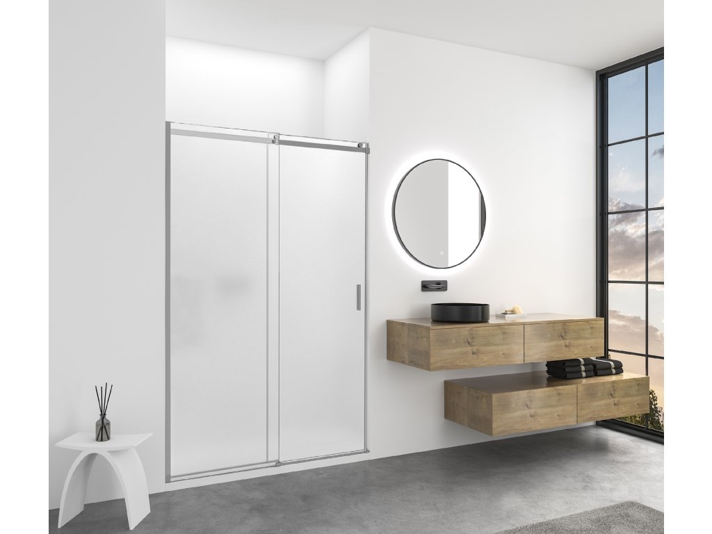 CERANO - Santoro tolóajtó zuhanykabinhoz - bal - 6 mm - króm, matt üveg - 110x195 cm