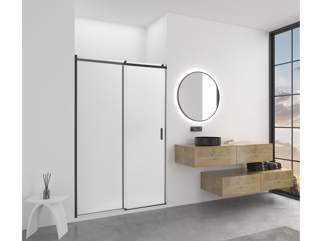 CERANO - Santoro tolóajtó zuhanykabinhoz - bal - 6 mm - matt fekete, matt üveg - 110x195 cm
