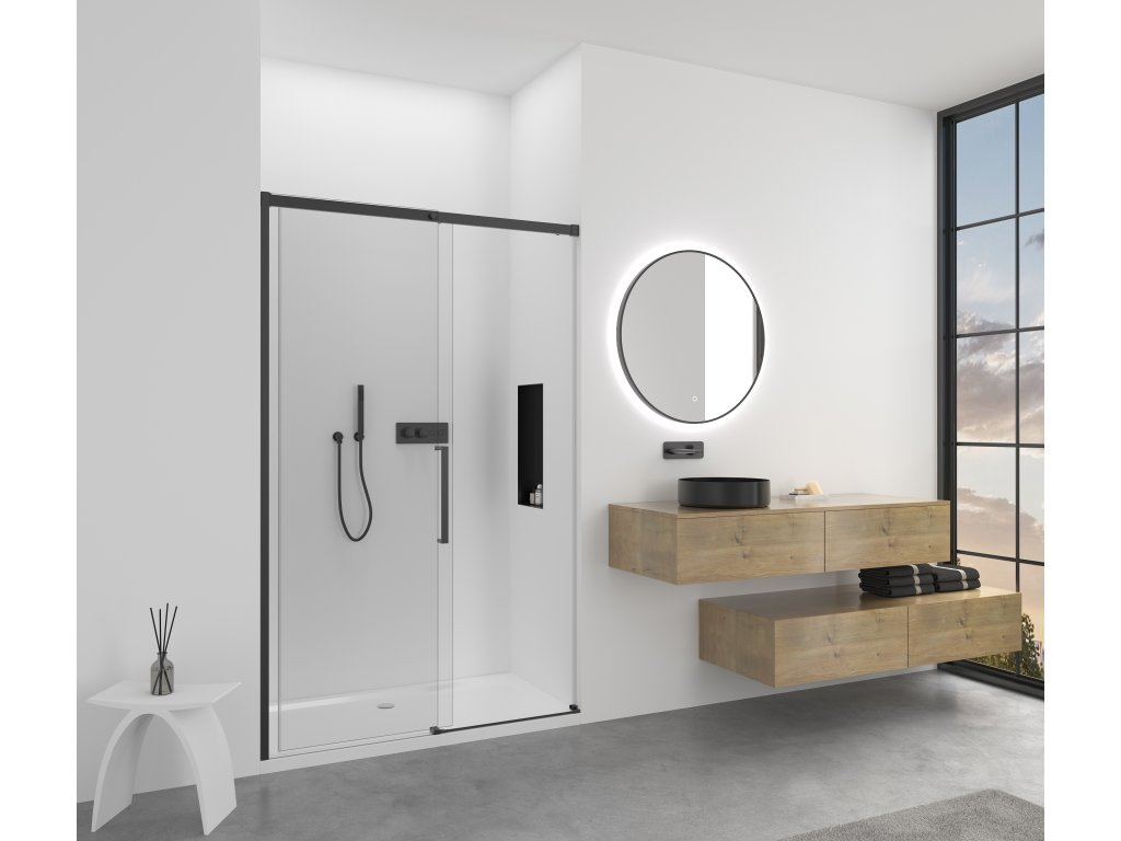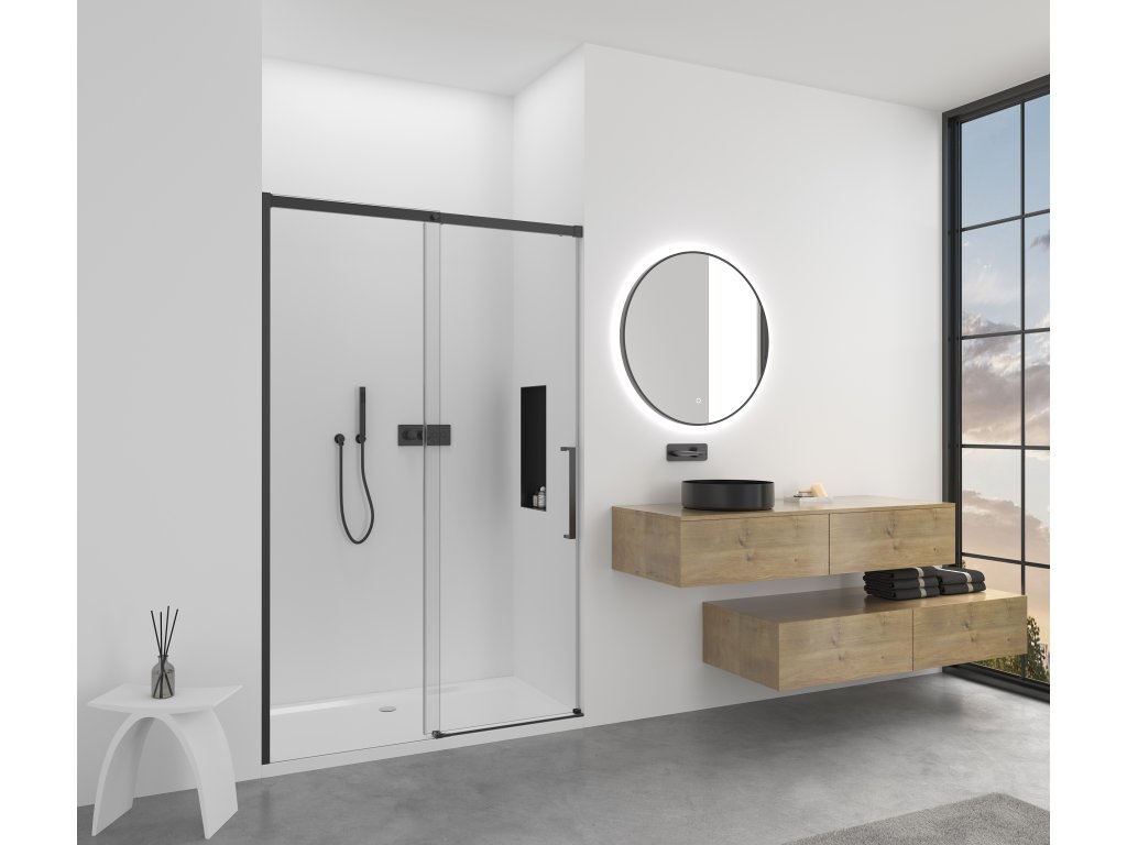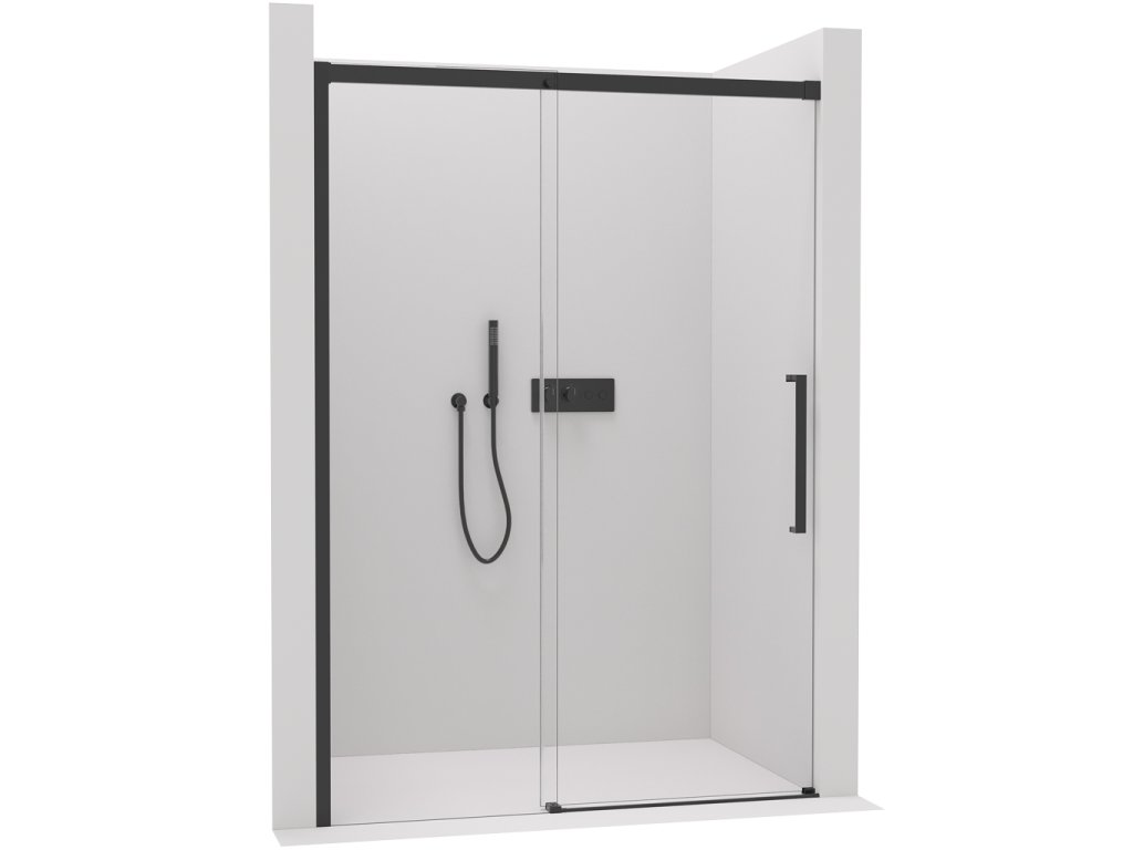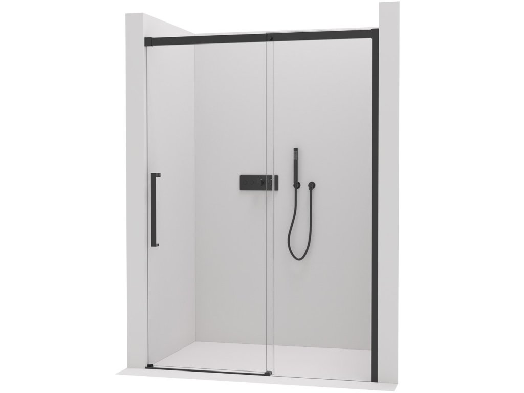 CERANO - Lantono B/J tolóajtó zuhanykabinhoz - 8 mm - Soft-Close - matt fekete, átlátszó üveg - 130x195 cm
