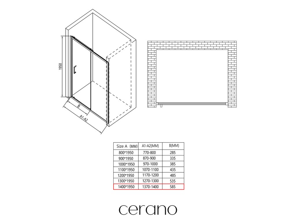 CERANO - Orlano tolóajtó zuhanykabinhoz B/J - 5 mm - króm, átlátszó üveg - 140x195 cm