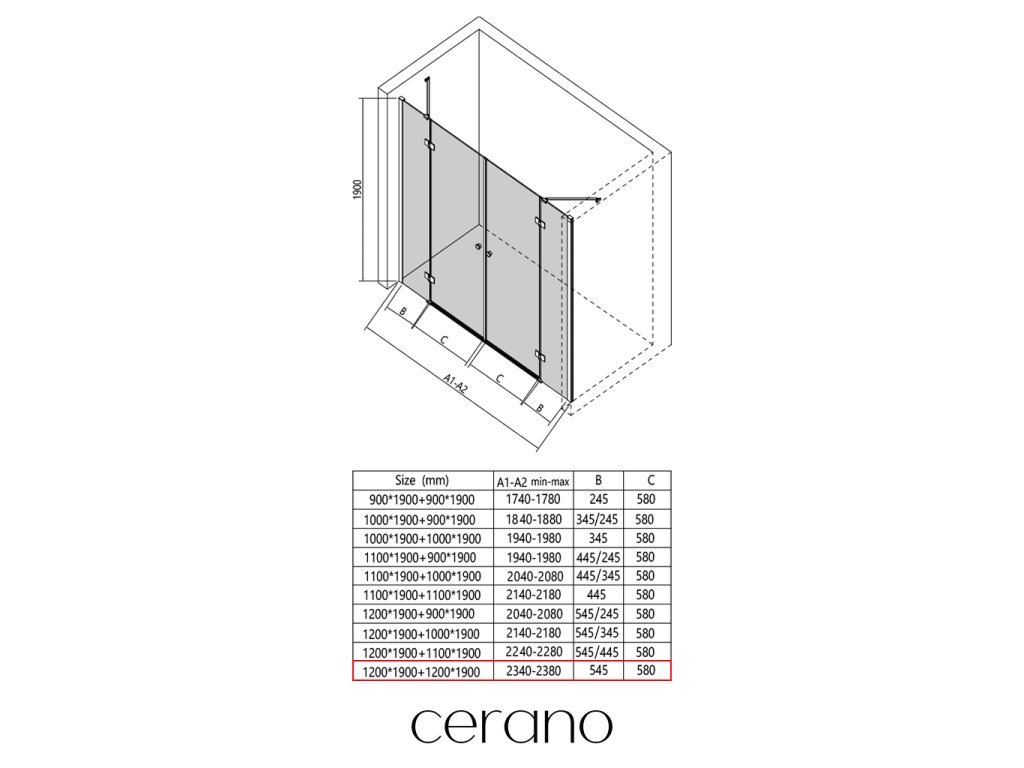 Ezen a sorozaton belül széles méretválasztékot kínálunk, hogy kielégítsük ügyfeleink különböző igényeit. Minden CERANO zuhanykabin, ajtó és paraván teljes mértékben kompatibilis az azonos méretű CERANO zuhanytálcákkal , biztosítva a zökkenőmentes telepítést és a tökéletes összehangolást. Ezenkívül a zuhanykabin rugalmasan telepíthető - akár a hozzá illő zuhanytálcára, akár közvetlenül a padlóra, az Ön preferenciáitól és a fürdőszobai lehetőségektől függően.