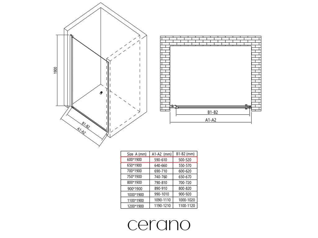 Ezen a sorozaton belül széles méretválasztékot kínálunk, hogy kielégítsük ügyfeleink különböző igényeit. Minden CERANO zuhanykabin, ajtó és paraván teljesen kompatibilis az azonos méretű CERANO zuhanytálcákkal , biztosítva a zökkenőmentes telepítést és a tökéletes összehangolást.