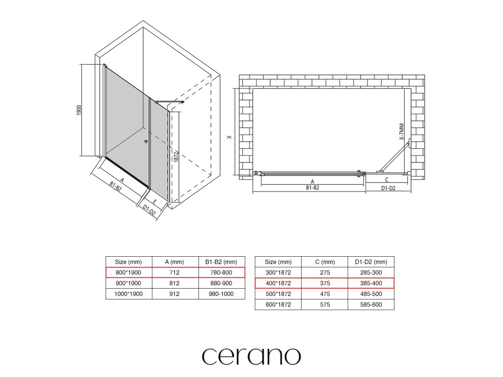 Ezen a sorozaton belül széles méretválasztékot kínálunk, hogy kielégítsük ügyfeleink különböző igényeit. Minden CERANO zuhanykabin, ajtó és paraván teljesen kompatibilis az azonos méretű CERANO zuhanytálcákkal , biztosítva a zökkenőmentes telepítést és a tökéletes összehangolást.