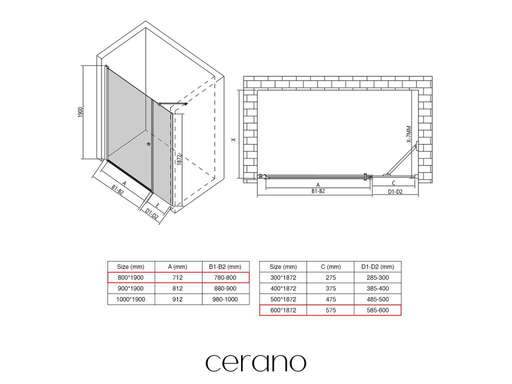Ezen a sorozaton belül széles méretválasztékot kínálunk, hogy kielégítsük ügyfeleink különböző igényeit. Minden CERANO zuhanykabin, ajtó és paraván teljesen kompatibilis az azonos méretű CERANO zuhanytálcákkal , biztosítva a zökkenőmentes telepítést és a tökéletes összehangolást.