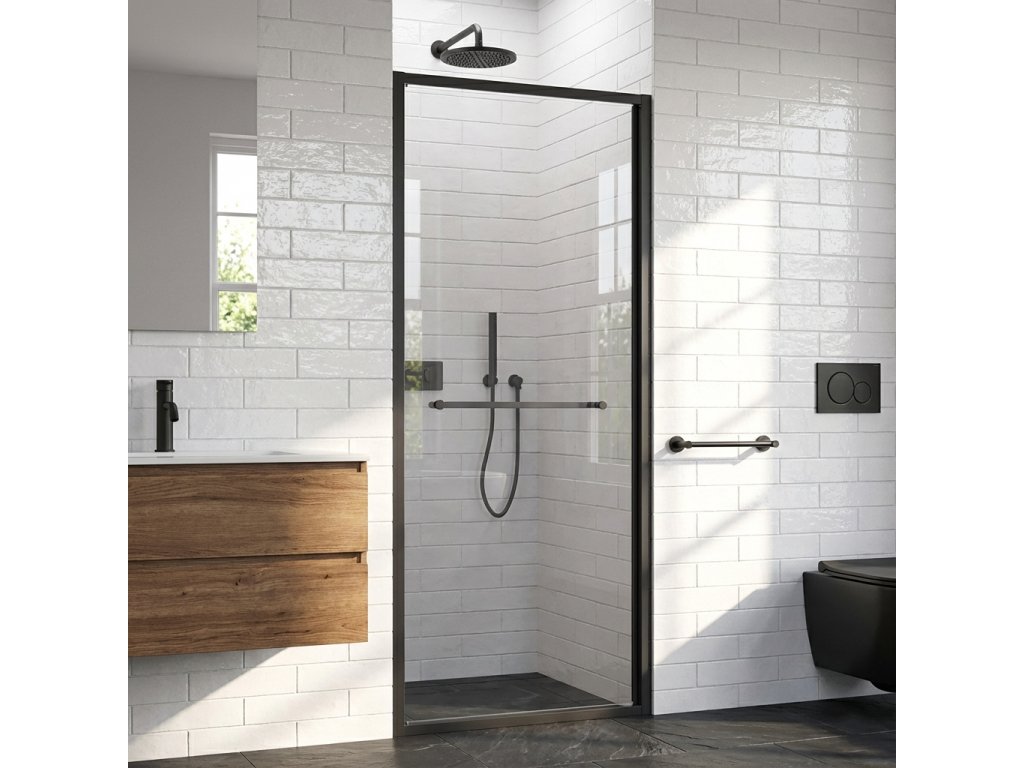 A tolóajtó innovatív módon illeszkedik a zuhanykabinba, így nagy bejárati területet hoz létre. Ez azt jelenti, hogy az ajtó nem zavarja a fürdőszobai teret. Ez egy nagyon megfelelő megoldás még kis fürdőszobákba is.