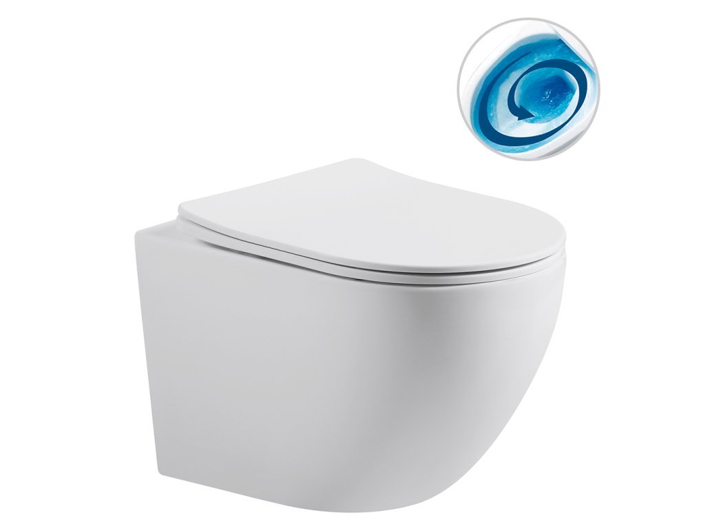 A perem nélküli öblítési technológia egy forradalmian új rendszer, amely az öblítőgyűrű hiányának köszönhetően higiénikus tisztaságot biztosít, mivel a szennyeződések és a baktériumok nem telepednek meg a nehezen elérhető helyeken.