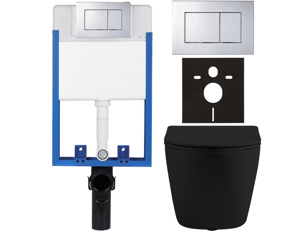 CERANO - Komplett falsík alatti WC-készlet Lite/Cesso - matt fekete - Klasszikus WC-gomb, króm - fali szereléshez - 49x36 cm