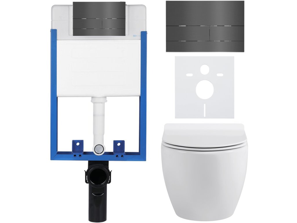CERANO - Komplett falsík alatti WC-készlet Lite/Dure - fényes fehér - Line WC-gomb, sötétszürke - fali szereléshez - 51,5x35 cm