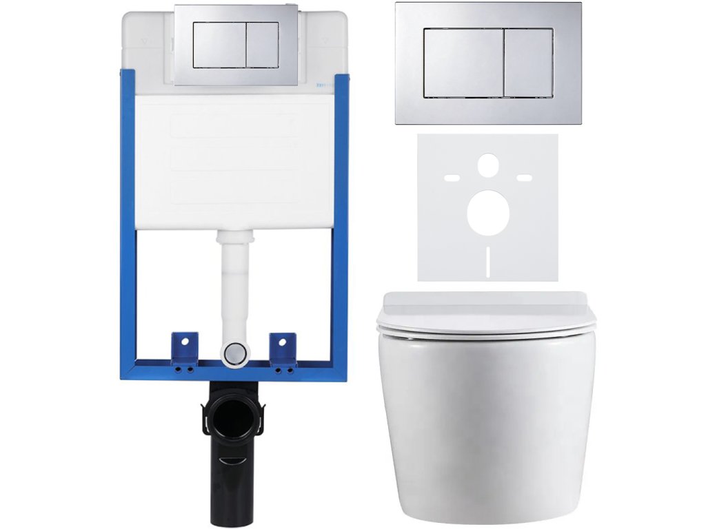 CERANO - Komplett falsík alatti WC-készlet Lite/Felci - fényes fehér - Klasszikus WC-gomb, króm - fali szereléshez - 52,5x36 cm
