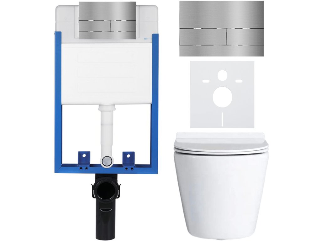 CERANO - Komplett falsík alatti WC-készlet Lite/Norbi - fényes fehér - Line WC-gomb, rozsdamentes acél - fali szereléshez - 48,5x36,5 cm