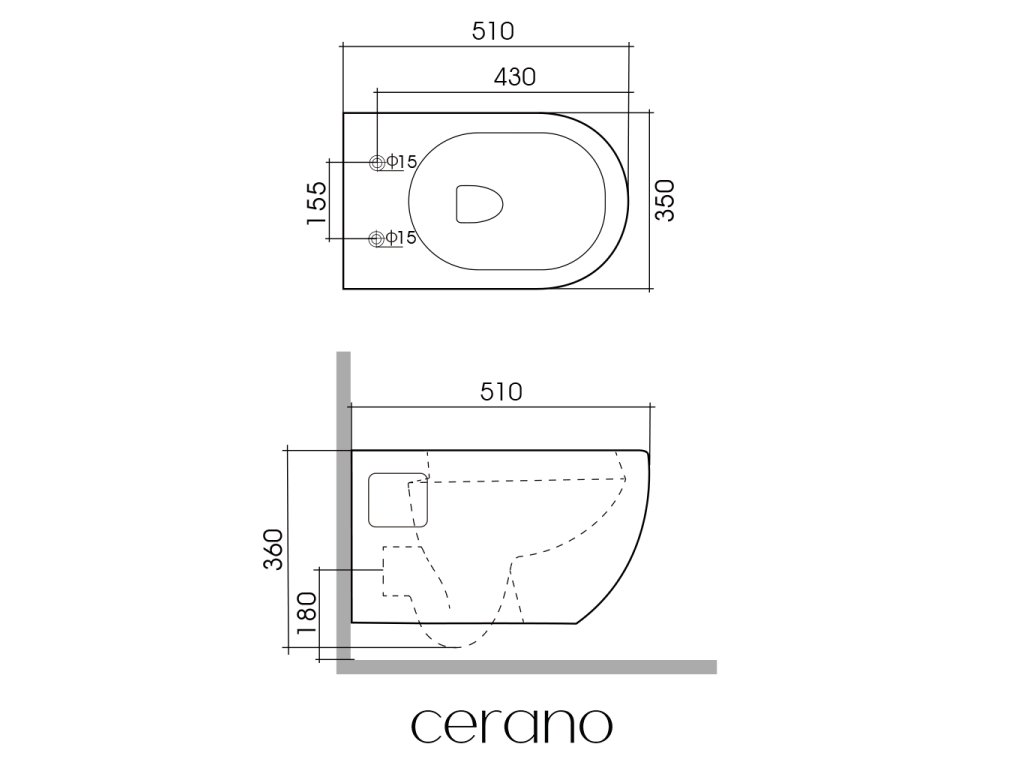 A Cerano fali WC-k könnyen felszerelhetők, és a szabványos rögzítési távolságnak köszönhetően kompatibilisek a Cerano modulokkal, valamint olyan márkák termékeivel, mint a Geberit, Grohe, Alcadrain, Jika, Tece stb.