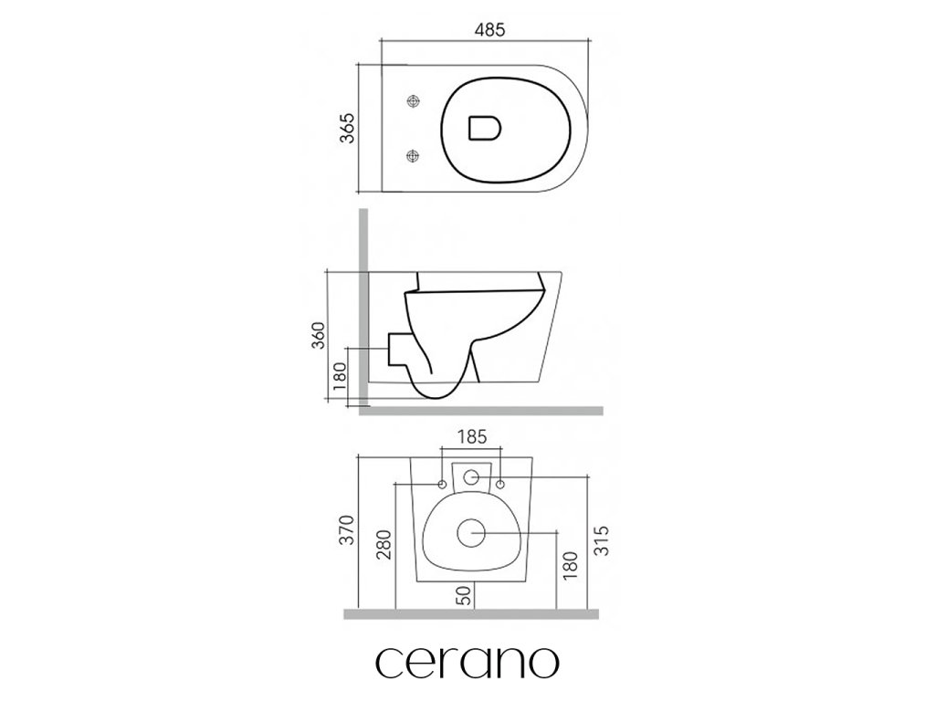 A Cerano fali WC-k könnyen felszerelhetők, és a szabványos rögzítési távolságnak köszönhetően kompatibilisek a Cerano modulokkal, valamint olyan márkák termékeivel, mint a Geberit, Grohe, Alcadrain, Jika, Tece stb.