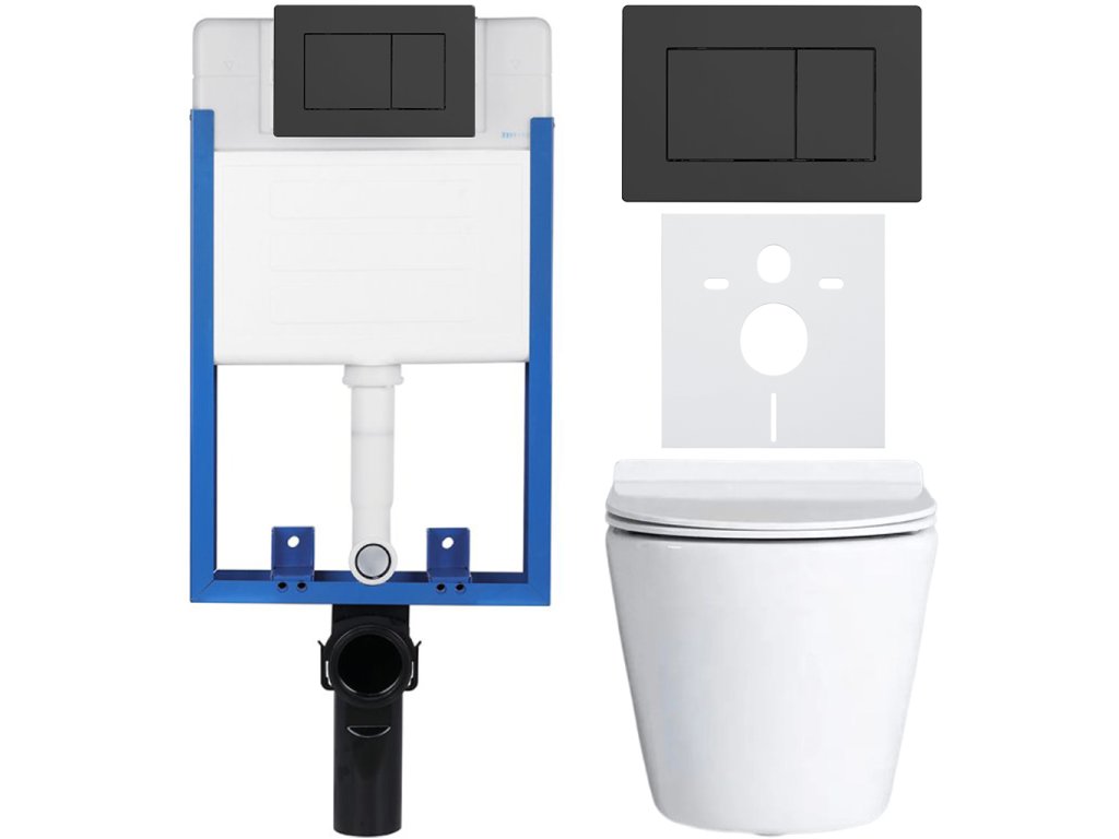 CERANO - Komplett falsík alatti WC-szett Lite/Norbi - fényes fehér - Klasszikus WC-gomb, matt fekete - fali szereléshez - 48,5x36,5 cm