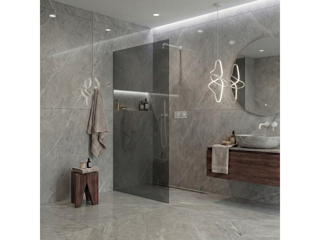A kifinomult kialakításnak köszönhetően az üveg teljesen vagy részben süllyeszthető profilokba rejthető (akár 14 mm-rel a csempébe vagy a burkolatba). Zavaró merevítők nélkül egy letisztult, elegáns megoldás jön létre, amely kiemeli a fürdőszoba modern megjelenését , és maximális vizuális világosságot biztosít a térnek.