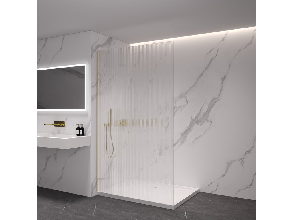 CERANO - Walk-in Crystal bal/jobb zuhanykabin - 8 mm - merevítő nélküli rendszer - aranyozott, szálcsiszolt, barázdált üveg - 100x200 cm