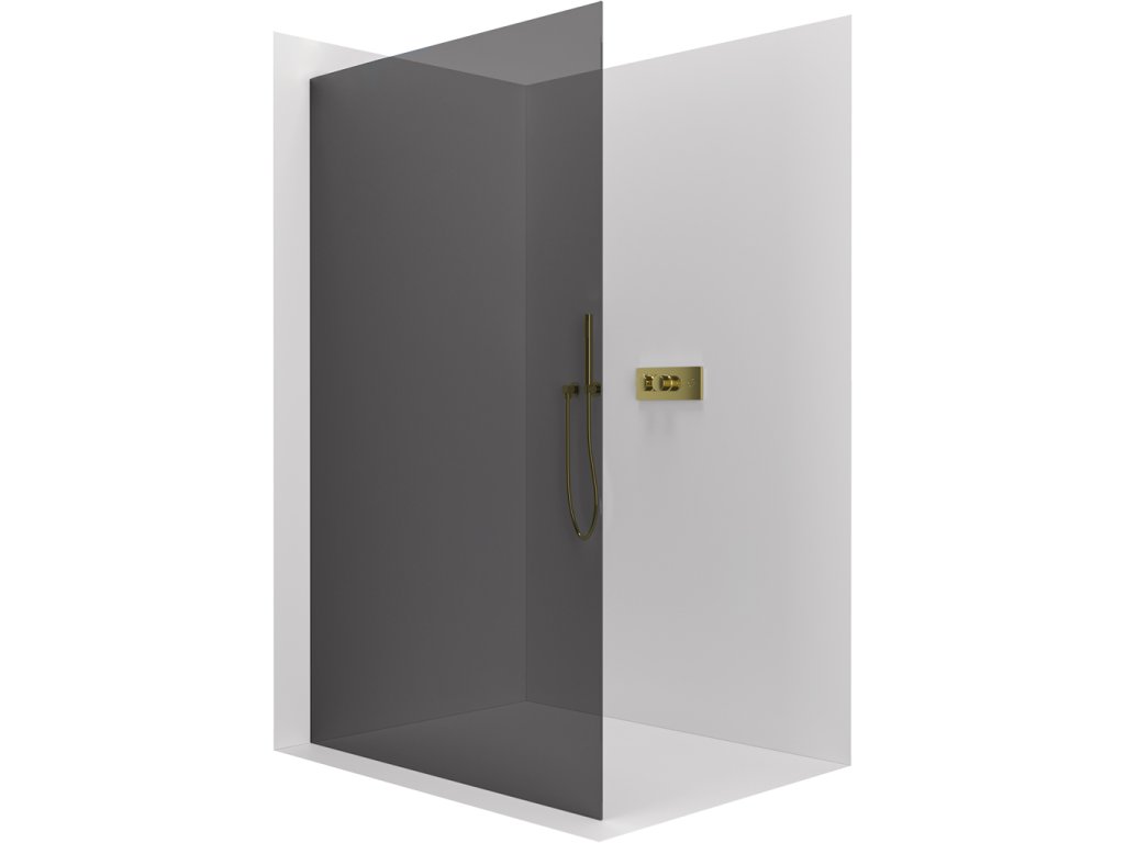 CERANO - Walk-in Crystal bal/jobb zuhanykabin - 8 mm - merevítő nélküli rendszer - szálcsiszolt arany, grafitüveg - 100x200 cm