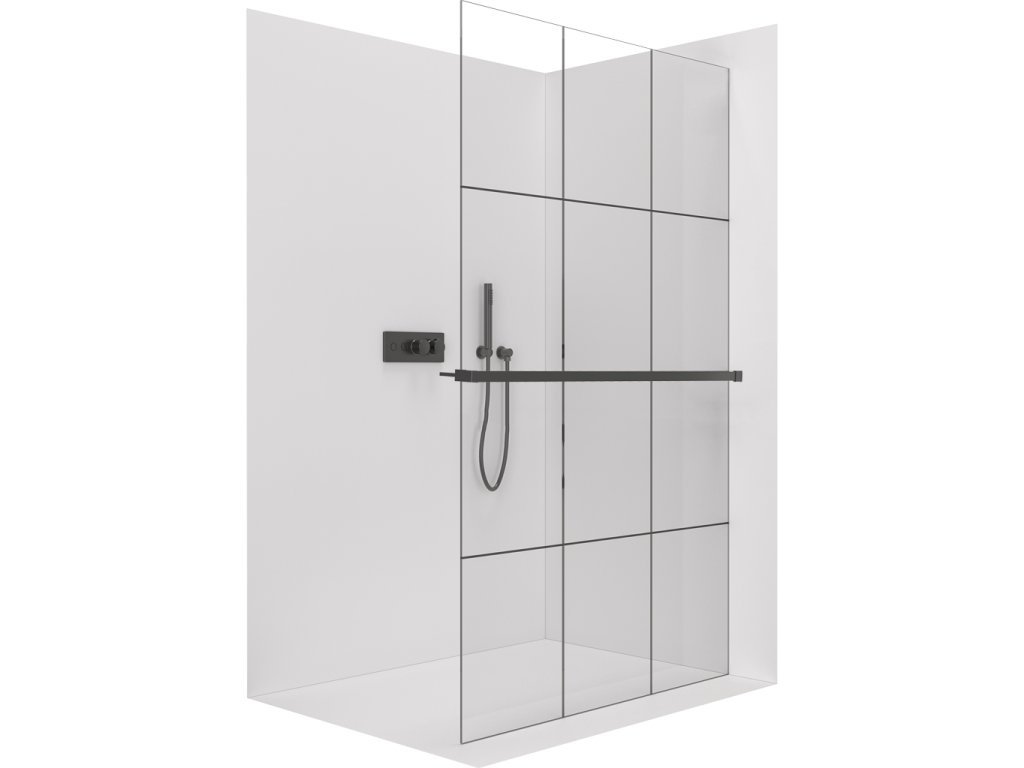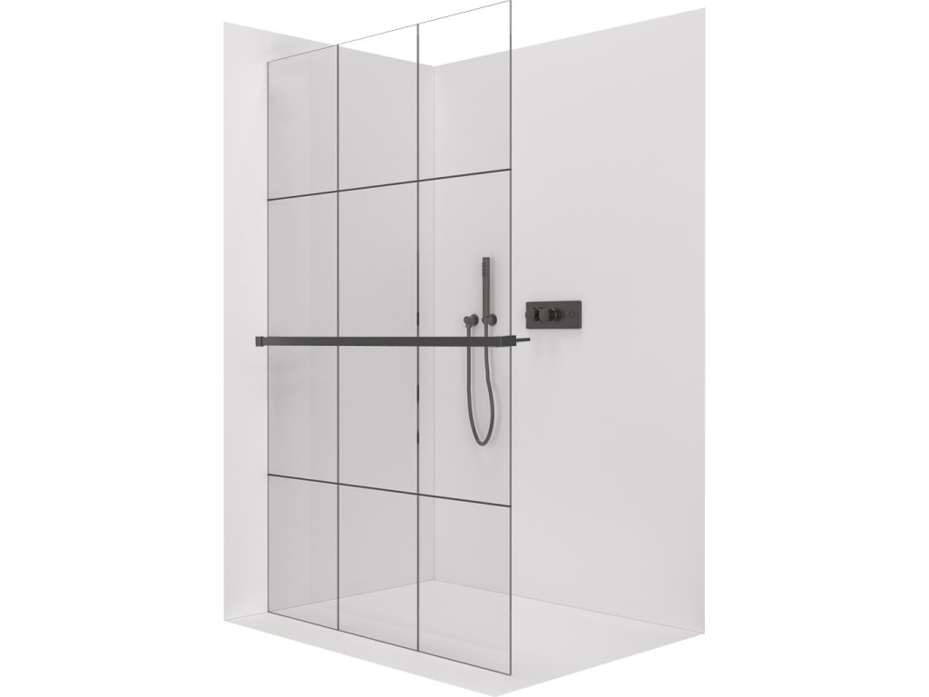 A zuhanykabin kialakítása lehetővé teszi a rejtett üvegezést zavaró merevítők nélkül, a teljesen vagy részben süllyeszthető profilok (14 mm, csempébe vagy térkőbe) segítségével . Az eredmény egy letisztult és elegáns megoldás , amely kiemeli a fürdőszoba modern megjelenését , és maximális vizuális világosságot biztosít a térben .