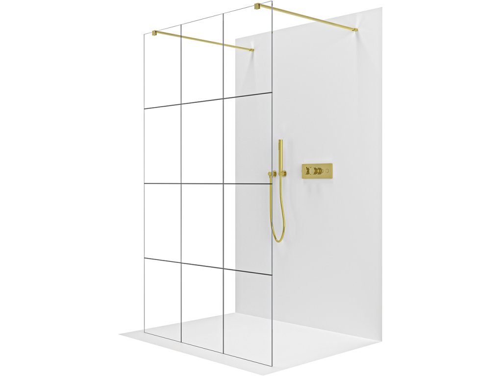 CERANO - Zuhanykabin Onyx Duo bal/jobb - 8 mm - négyzet alakú tartó - arany, ipari üveg - 100x200 cm