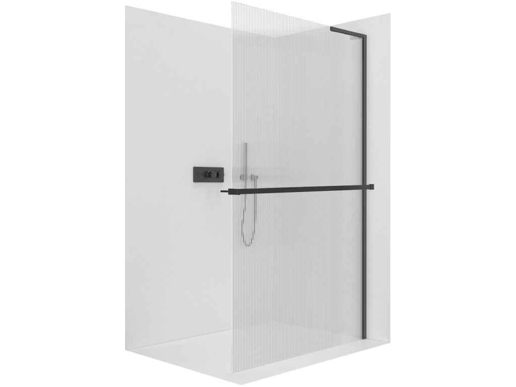 CERANO - Zuhanykabin Onyx B-jobb oldali merevítő - 8 mm + polc/törölközőtartó - matt fekete, rovátkolt üveg - 110x200 cm
