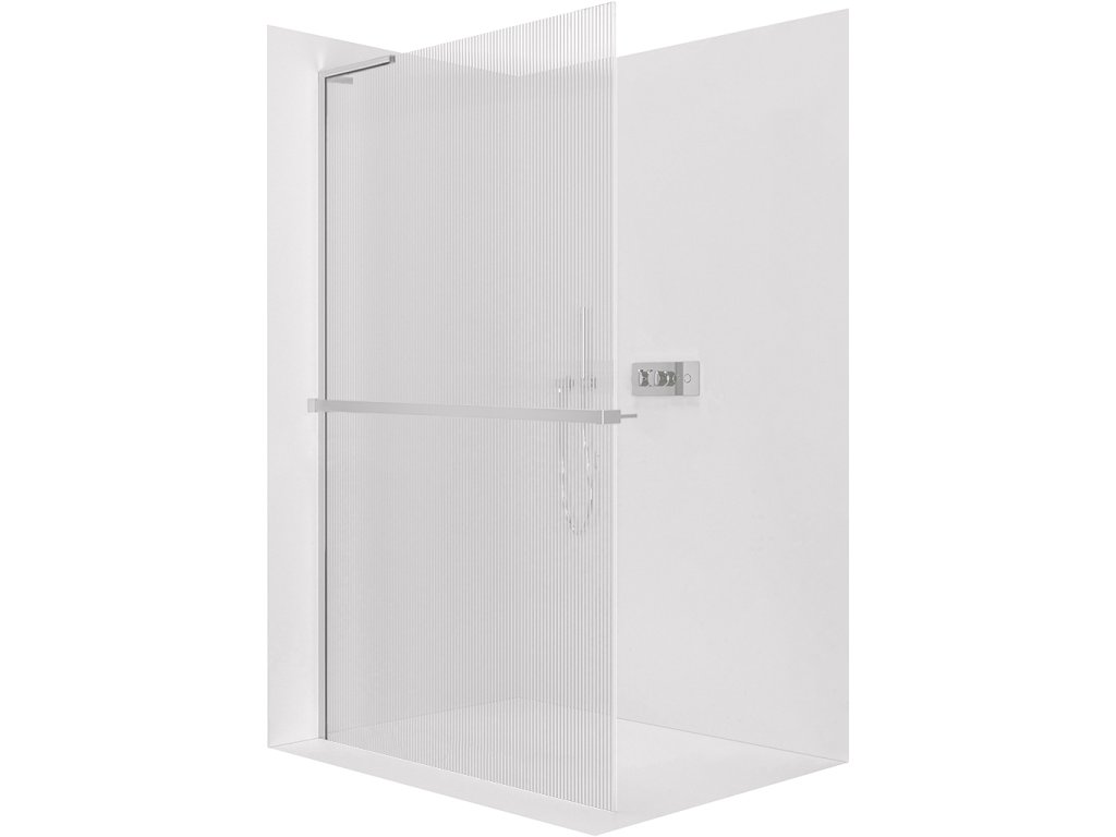 CERANO - Zuhanykabin Onyx L-bal oldali merevítő - 8 mm + polc/törölközőtartó - króm, rovátkolt üveg - 110x200 cm