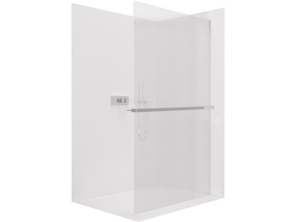 A zuhanykabin kialakítása lehetővé teszi a rejtett üvegezést zavaró merevítők nélkül, a teljesen vagy részben süllyeszthető profilok (14 mm, csempébe vagy térkőbe) segítségével . Az eredmény egy letisztult és elegáns megoldás , amely kiemeli a fürdőszoba modern megjelenését , és maximális vizuális világosságot biztosít a térben .