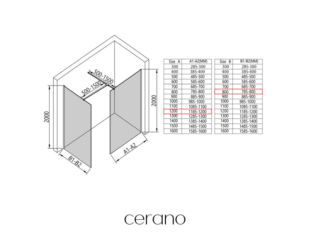 Ezen a sorozaton belül széles méretválasztékot kínálunk, hogy kielégítsük ügyfeleink különböző igényeit. Minden Cerano zuhanykabin, ajtó és paraván teljesen kompatibilis az azonos méretű Cerano zuhanytálcákkal , biztosítva a zökkenőmentes telepítést és a tökéletes összehangolást. Ezenkívül a zuhanykabin rugalmasan beszerelhető - akár a hozzá illő zuhanytálcára, akár közvetlenül a padlóra, az Ön preferenciáitól és a fürdőszobai lehetőségektől függően.