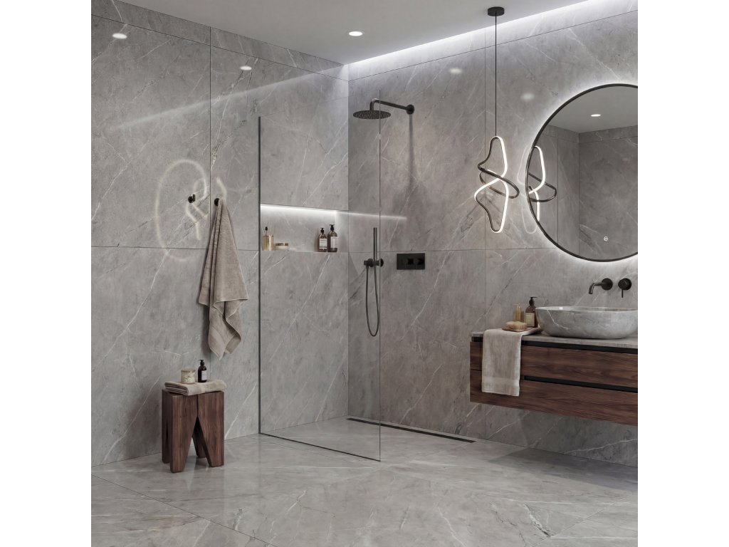 A kifinomult kialakításnak köszönhetően az üveg teljesen vagy részben süllyeszthető profilokba rejthető (akár 14 mm-rel a csempébe vagy a burkolatba). Zavaró merevítők nélkül egy letisztult, elegáns megoldás jön létre, amely kiemeli a fürdőszoba modern megjelenését , és maximális vizuális világosságot biztosít a térnek.