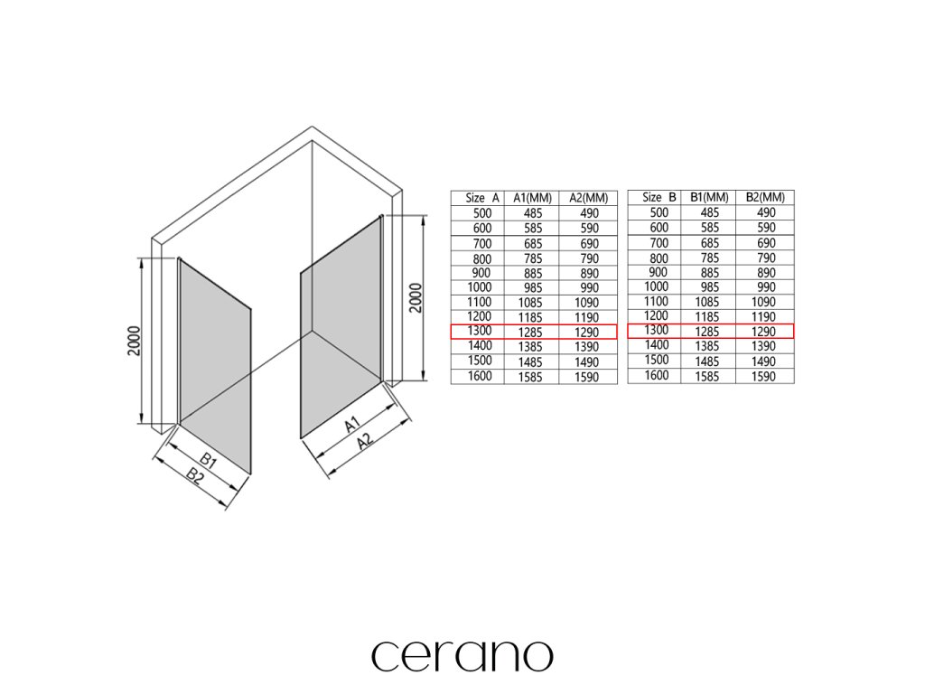 Ezen a sorozaton belül széles méretválasztékot kínálunk, hogy kielégítsük ügyfeleink különböző igényeit. Minden Cerano zuhanykabin, ajtó és paraván teljesen kompatibilis az azonos méretű Cerano zuhanytálcákkal , biztosítva a zökkenőmentes beszerelést és a tökéletes illeszkedést. Ezenkívül a zuhanykabin rugalmasan beszerelhető – akár a hozzá illő zuhanytálcára , akár közvetlenül a padlóra , az Ön preferenciáitól és a fürdőszobai lehetőségektől függően.
