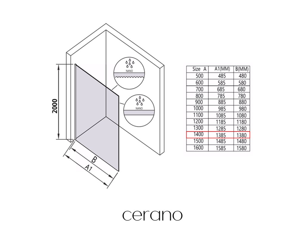 Ezen a sorozaton belül széles méretválasztékot kínálunk, hogy kielégítsük ügyfeleink különböző igényeit. Minden Cerano zuhanykabin, ajtó és paraván teljesen kompatibilis az azonos méretű Cerano zuhanytálcákkal , biztosítva a zökkenőmentes beszerelést és a tökéletes illeszkedést. Ezenkívül a zuhanykabin rugalmasan beszerelhető – akár a hozzá illő zuhanytálcára , akár közvetlenül a padlóra , az Ön preferenciáitól és a fürdőszobai lehetőségektől függően.