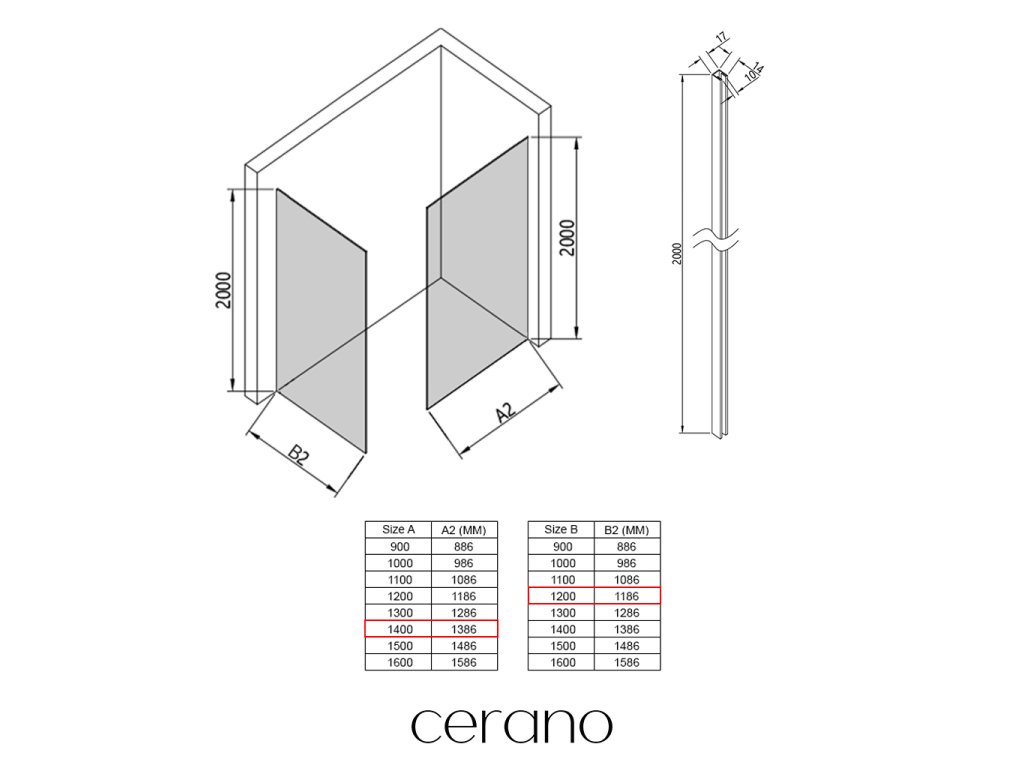 Ezen a sorozaton belül széles méretválasztékot kínálunk, hogy kielégítsük ügyfeleink különböző igényeit. Minden Cerano zuhanykabin, ajtó és paraván teljesen kompatibilis az azonos méretű Cerano zuhanytálcákkal , biztosítva a zökkenőmentes beszerelést és a tökéletes illeszkedést. Ezenkívül a zuhanykabin rugalmasan beszerelhető – akár a hozzá illő zuhanytálcára , akár közvetlenül a padlóra , az Ön preferenciáitól és a fürdőszobai lehetőségektől függően.