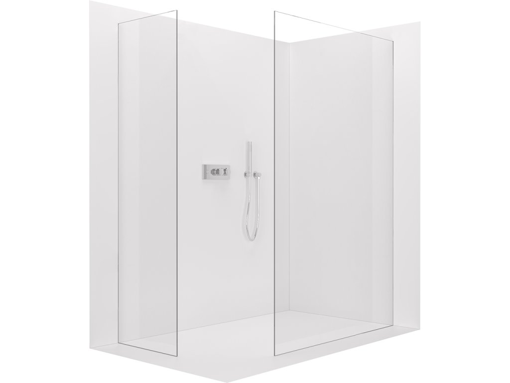 A zuhanykabin kialakítása lehetővé teszi a rejtett üvegezést zavaró merevítők nélkül, a teljesen vagy részben süllyeszthető profilok (14 mm, csempébe vagy térkőbe) segítségével . Az eredmény egy letisztult és elegáns megoldás , amely kiemeli a fürdőszoba modern megjelenését , és maximális vizuális világosságot biztosít a térben .
