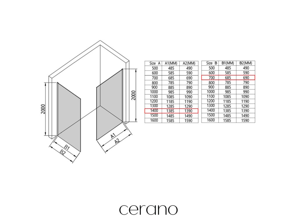 Ezen a sorozaton belül széles méretválasztékot kínálunk, hogy kielégítsük ügyfeleink különböző igényeit. Minden Cerano zuhanykabin, ajtó és paraván teljesen kompatibilis az azonos méretű Cerano zuhanytálcákkal , biztosítva a zökkenőmentes beszerelést és a tökéletes illeszkedést. Ezenkívül a zuhanykabin rugalmasan beszerelhető – akár a hozzá illő zuhanytálcára , akár közvetlenül a padlóra , az Ön preferenciáitól és a fürdőszobai lehetőségektől függően.