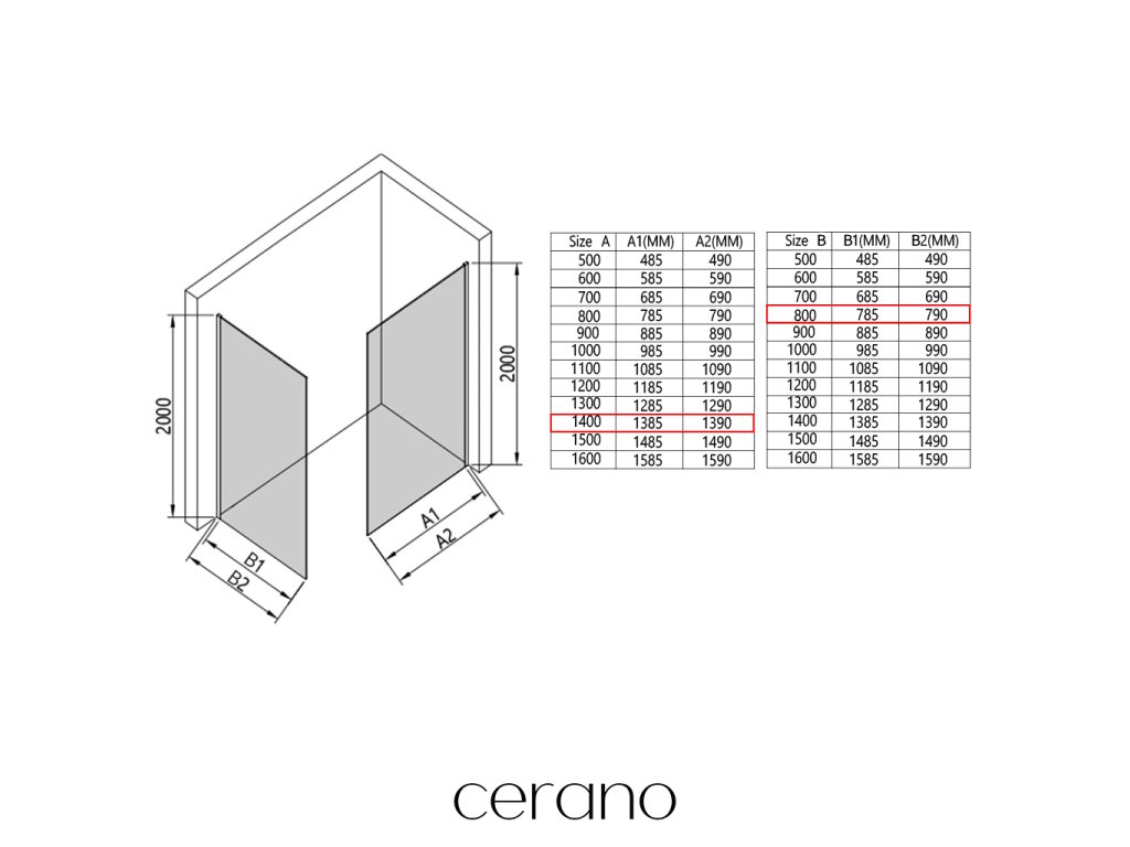 Ezen a sorozaton belül széles méretválasztékot kínálunk, hogy kielégítsük ügyfeleink különböző igényeit. Minden Cerano zuhanykabin, ajtó és paraván teljesen kompatibilis az azonos méretű Cerano zuhanytálcákkal , biztosítva a zökkenőmentes beszerelést és a tökéletes illeszkedést. Ezenkívül a zuhanykabin rugalmasan beszerelhető – akár a hozzá illő zuhanytálcára , akár közvetlenül a padlóra , az Ön preferenciáitól és a fürdőszobai lehetőségektől függően.