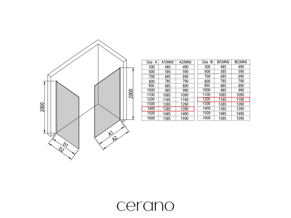 Ezen a sorozaton belül széles méretválasztékot kínálunk, hogy kielégítsük ügyfeleink különböző igényeit. Minden Cerano zuhanykabin, ajtó és paraván teljesen kompatibilis az azonos méretű Cerano zuhanytálcákkal , biztosítva a zökkenőmentes beszerelést és a tökéletes illeszkedést. Ezenkívül a zuhanykabin rugalmasan beszerelhető – akár a hozzá illő zuhanytálcára , akár közvetlenül a padlóra , az Ön preferenciáitól és a fürdőszobai lehetőségektől függően.