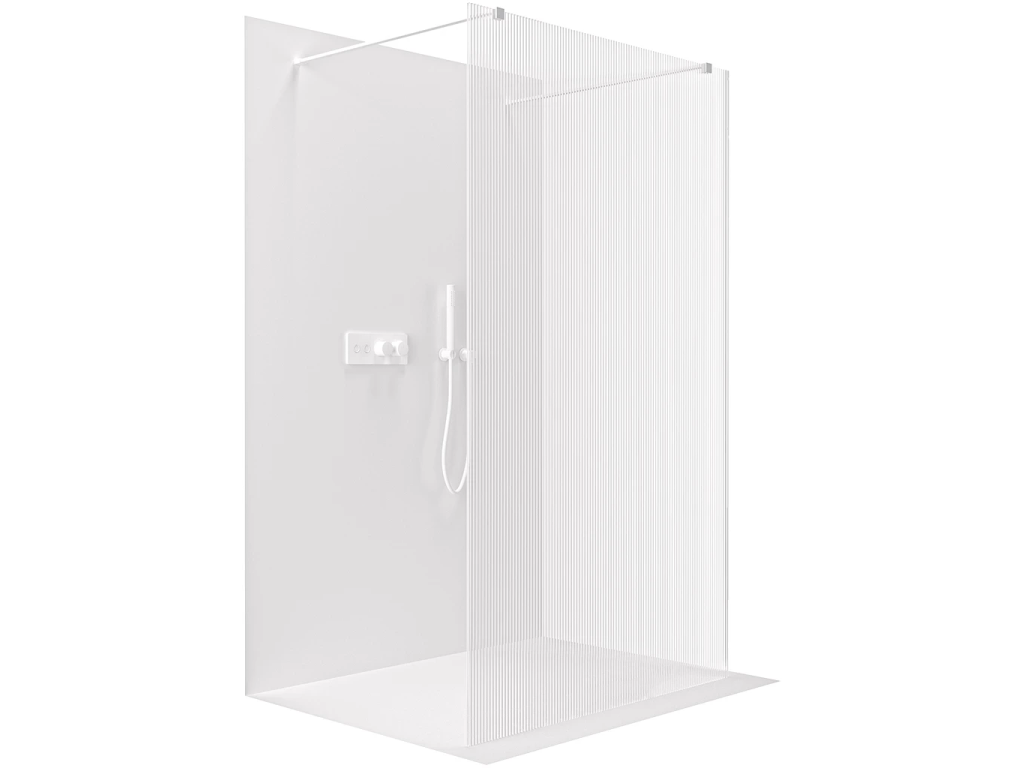CERANO - Walk-in Onyx Duo bal/jobb zuhanykabin - 8 mm - négyzet alakú tartó - matt fehér, rovátkolt üveg - 140x200 cm