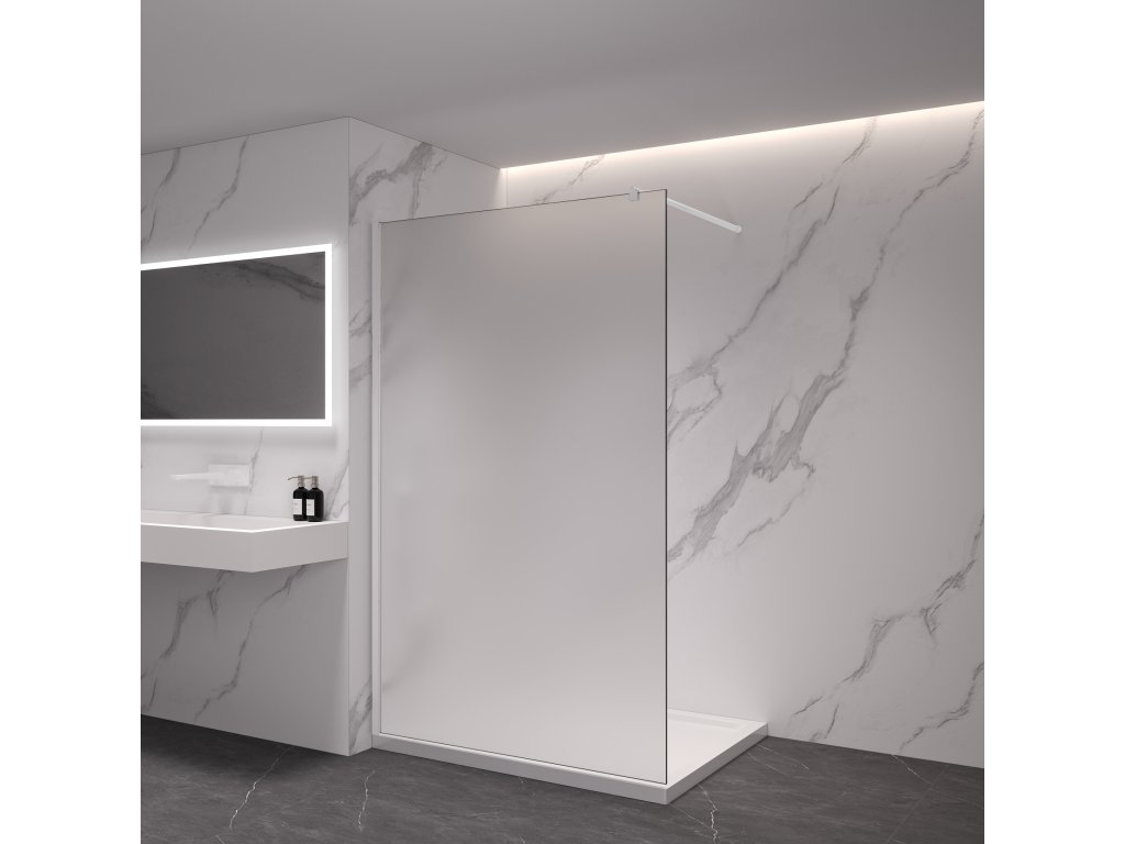 CERANO - Zuhanykabin Onyx kerek bal/jobb - 8 mm - kerek tartó - matt fehér, tejüveg - 140x200 cm