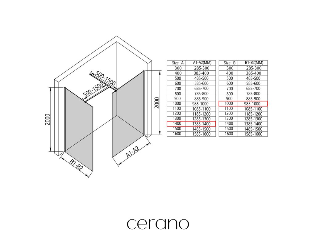 Ezen a sorozaton belül széles méretválasztékot kínálunk, hogy kielégítsük ügyfeleink különböző igényeit. Minden Cerano zuhanykabin, ajtó és paraván teljesen kompatibilis az azonos méretű Cerano zuhanytálcákkal , biztosítva a zökkenőmentes telepítést és a tökéletes összehangolást. Ezenkívül a zuhanykabin rugalmasan beszerelhető - akár a hozzá illő zuhanytálcára, akár közvetlenül a padlóra, az Ön preferenciáitól és a fürdőszobai lehetőségektől függően.