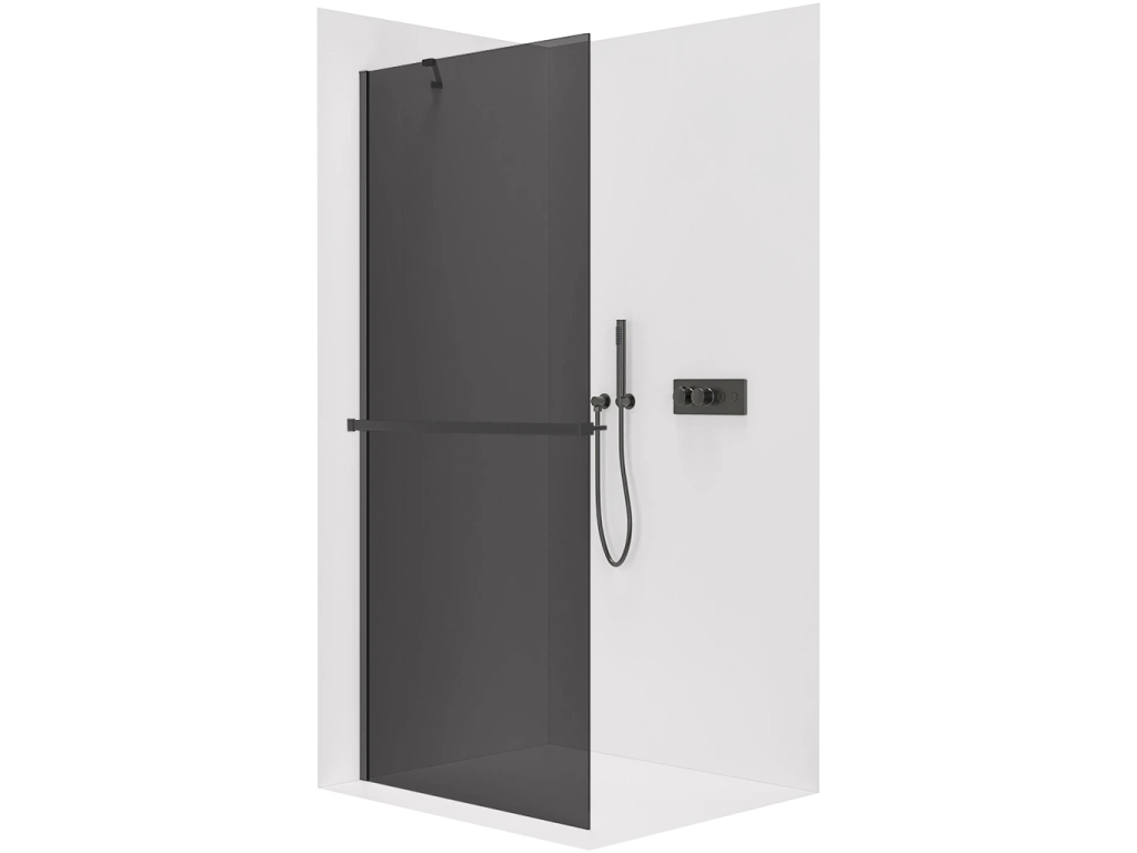 CERANO - Zuhanykabin Onyx YL/P - 10 mm + polc/törölközőtartó - matt fekete, grafitüveg - 140x200 cm