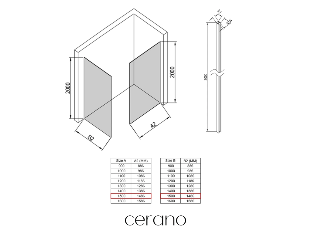 Ezen a sorozaton belül széles méretválasztékot kínálunk, hogy kielégítsük ügyfeleink különböző igényeit. Minden Cerano zuhanykabin, ajtó és paraván teljesen kompatibilis az azonos méretű Cerano zuhanytálcákkal , biztosítva a zökkenőmentes beszerelést és a tökéletes illeszkedést. Ezenkívül a zuhanykabin rugalmasan beszerelhető – akár a hozzá illő zuhanytálcára , akár közvetlenül a padlóra , az Ön preferenciáitól és a fürdőszobai lehetőségektől függően.