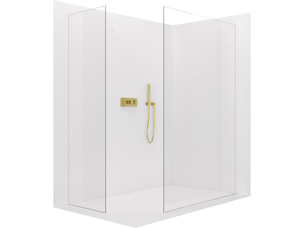 CERANO - Walk-in Crystal TL/P zuhanyfal - 8 mm - merevítő nélküli rendszer - szálcsiszolt arany, átlátszó üveg - 150x90x200 cm