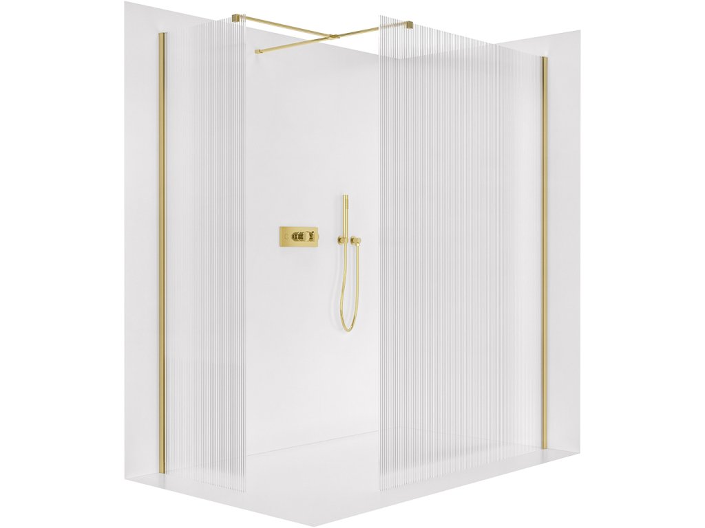CERANO - Zuhanykabin Onyx TL/P - 8 mm - négyzet alakú tartó - arany, rovátkolt üveg - 150x150x200 cm