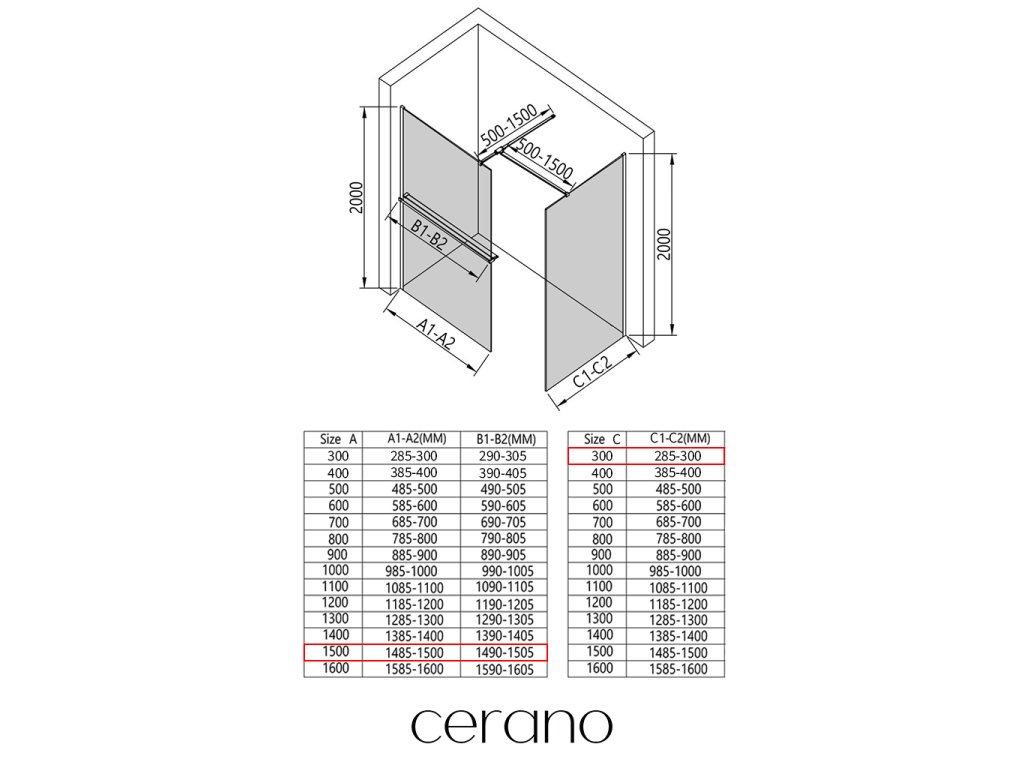 Ezen a sorozaton belül széles méretválasztékot kínálunk, hogy kielégítsük ügyfeleink különböző igényeit. Minden Cerano zuhanykabin, ajtó és paraván teljesen kompatibilis az azonos méretű Cerano zuhanytálcákkal , biztosítva a zökkenőmentes telepítést és a tökéletes összehangolást. Ezenkívül a zuhanykabin rugalmasan beszerelhető - akár a hozzá illő zuhanytálcára, akár közvetlenül a padlóra, az Ön preferenciáitól és a fürdőszobai lehetőségektől függően.