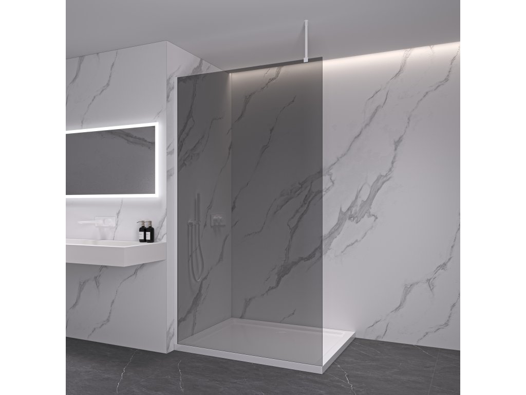 CERANO - Zuhanykabin Onyx Top Round B/J - 8 mm - kerek tartó - matt fehér, grafitüveg - 150x200 cm
