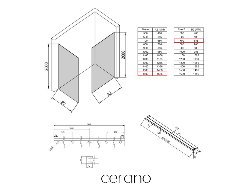 Ezen a sorozaton belül széles méretválasztékot kínálunk, hogy kielégítsük ügyfeleink különböző igényeit. Minden Cerano zuhanykabin, ajtó és paraván teljesen kompatibilis az azonos méretű Cerano zuhanytálcákkal , biztosítva a zökkenőmentes beszerelést és a tökéletes illeszkedést. Ezenkívül a zuhanykabin rugalmasan beszerelhető – akár a hozzá illő zuhanytálcára , akár közvetlenül a padlóra , az Ön preferenciáitól és a fürdőszobai lehetőségektől függően.