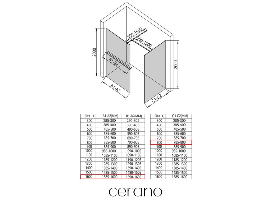 Ezen a sorozaton belül széles méretválasztékot kínálunk, hogy kielégítsük ügyfeleink különböző igényeit. Minden Cerano zuhanykabin, ajtó és paraván teljesen kompatibilis az azonos méretű Cerano zuhanytálcákkal , biztosítva a zökkenőmentes telepítést és a tökéletes összehangolást. Ezenkívül a zuhanykabin rugalmasan beszerelhető - akár a hozzá illő zuhanytálcára, akár közvetlenül a padlóra, az Ön preferenciáitól és a fürdőszobai lehetőségektől függően.