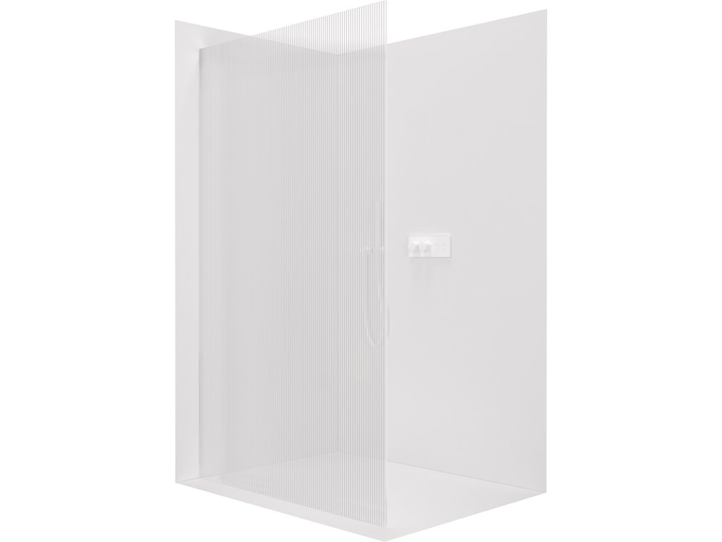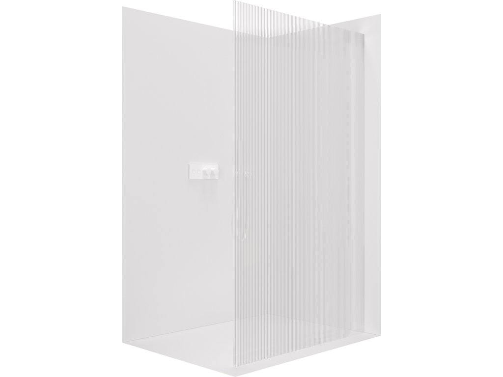 CERANO - Walk-in Crystal bal/jobb zuhanykabin - 8 mm - merevítő nélküli rendszer - matt fehér, rovátkolt üveg - 80x200 cm