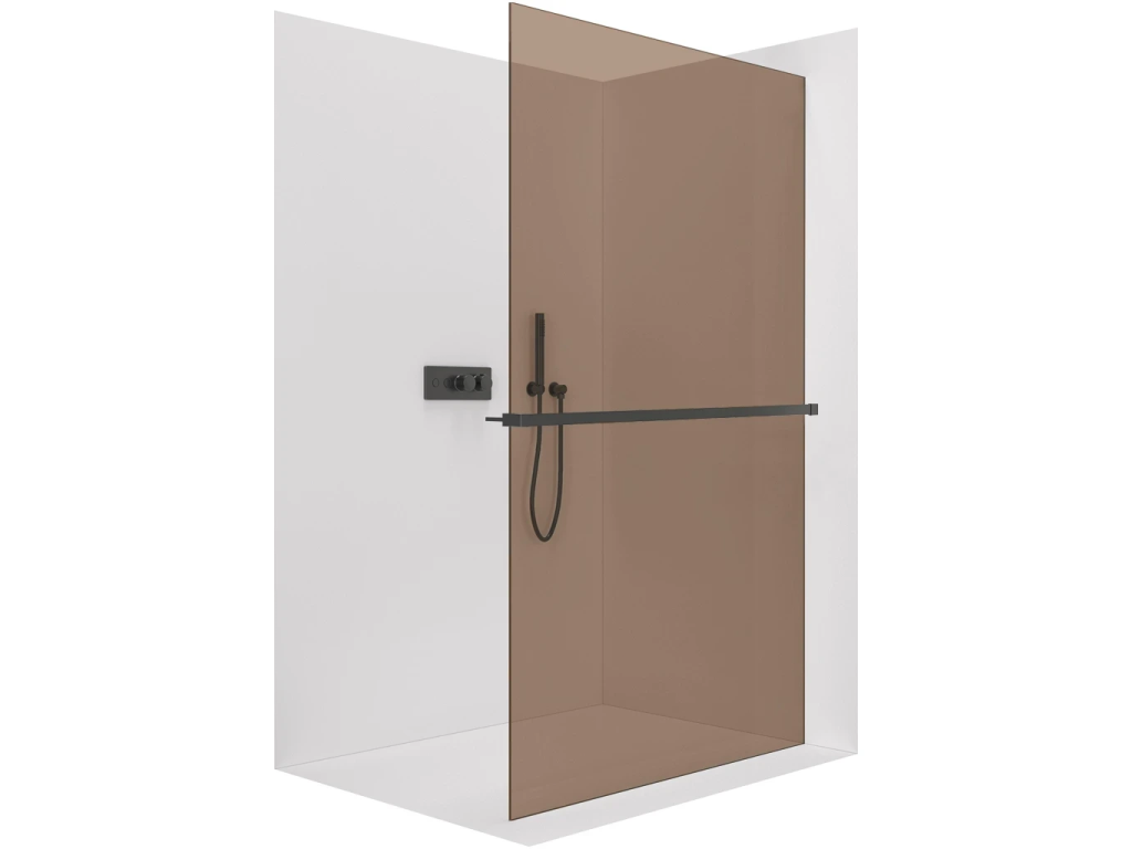 CERANO - Walk-in Crystal bal/jobb zuhanykabin - 8 mm + törölközőtartó polc/polc - merevítő nélküli rendszer - matt fekete, bronz üveg - 80x200 cm