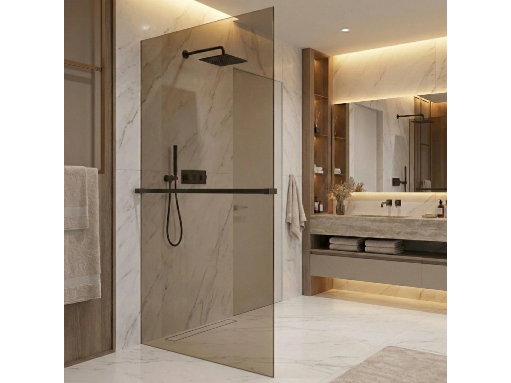 A falprofil lehetővé teszi a részleges vagy teljes süllyesztést a falba a megrendelő igényei szerint. Ez a rendszer modern megoldást kínál a zuhanykabin beépítésére, letisztult megjelenést biztosít, miközben pontosan illeszkedik a fürdőszoba formájához. A hagyományos alumínium profilokkal ellentétben ez kiváló minőségű rozsdamentes acélból készült, ami nagyobb tartósságot és hosszabb élettartamot biztosít.