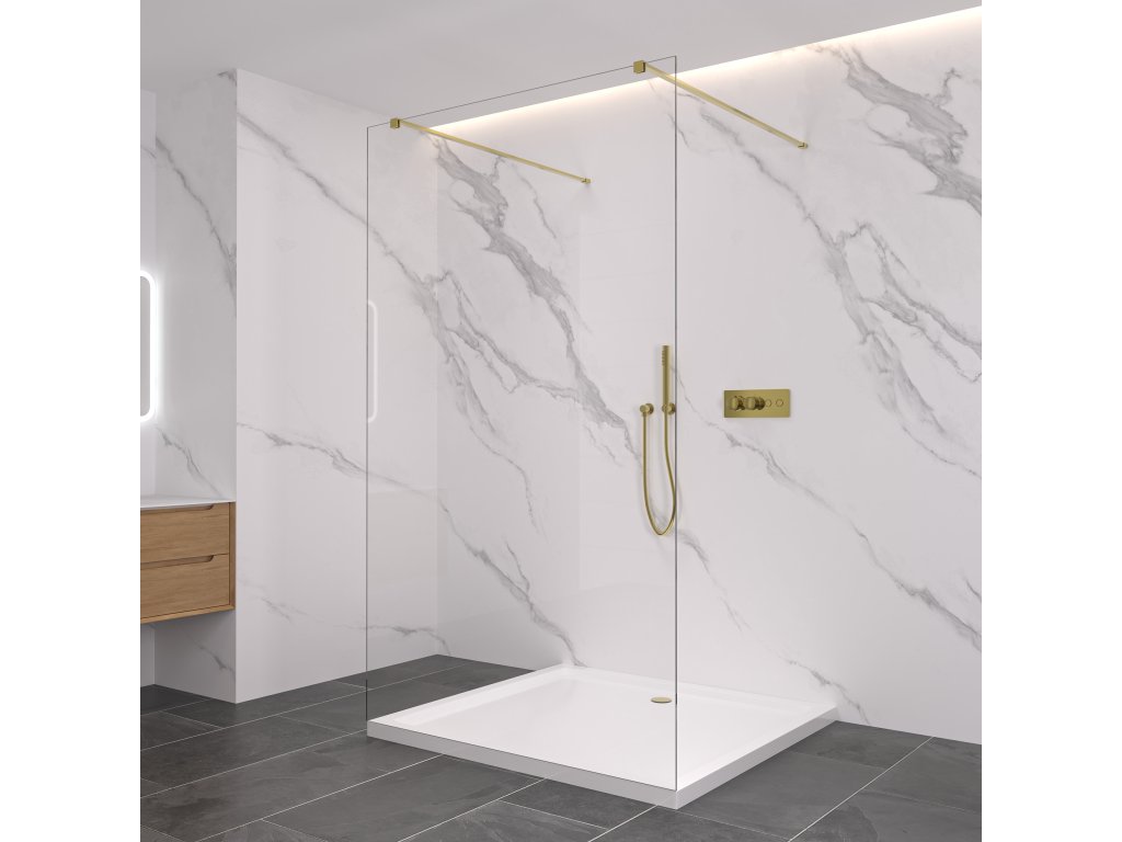 CERANO - Zuhanykabin Onyx Duo bal/jobb - 8 mm - négyzet alakú tartó - szálcsiszolt arany, átlátszó üveg - 80x200 cm